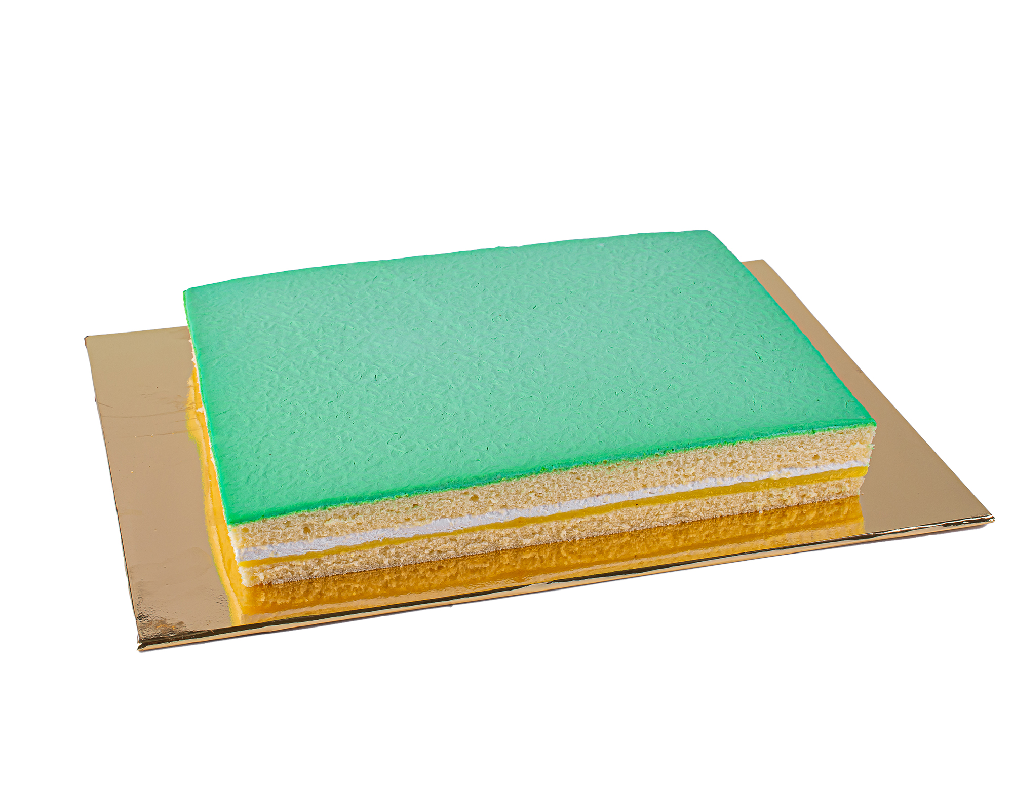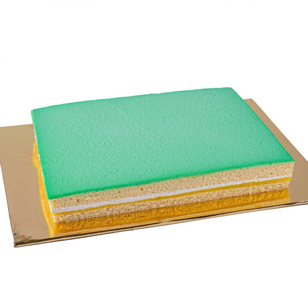 Description: Vanilla sponge with banana and kaya fillings Packing: 2SLAB/TRAY Size: ± 35.5cm (L) x 28cm (W) x 3.6cm (H) Weight : ± 2500g Storage: -18°C Cut 180pcs – ready stock