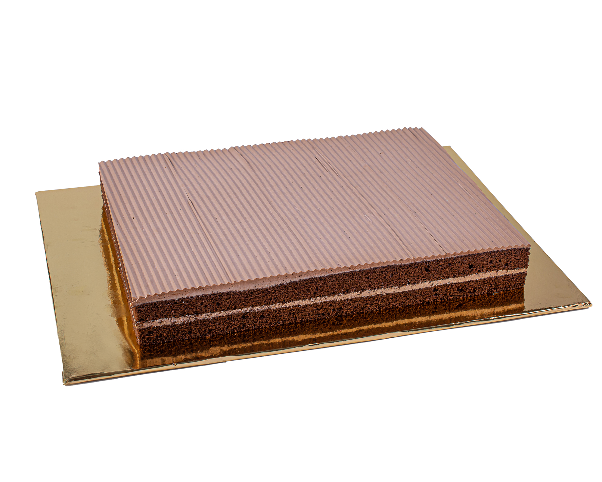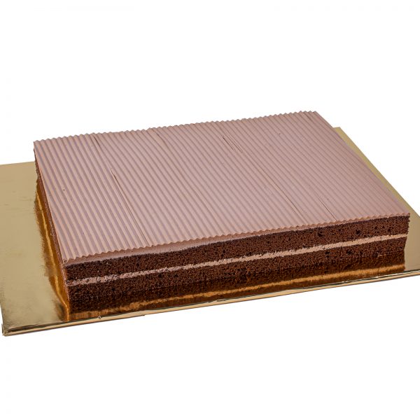 Description: Chocolate Sponge with Choc Chocolate Cream Packing: 2SLAB/TRAY Size: ± 35.5cm (L) x 28cm (W) x 3.6cm (H) Weight : ± 2000g Storage: -18°C Cut 180pcs – ready stock